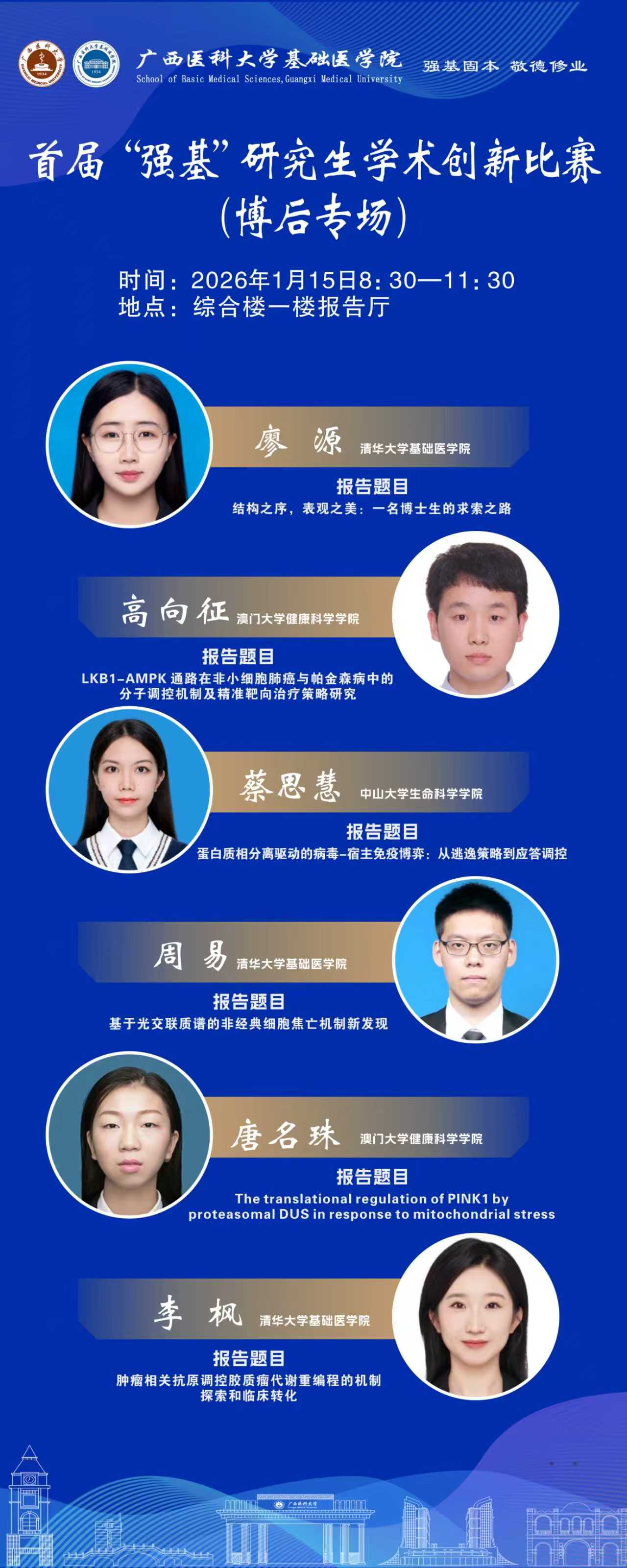 太阳成集团tyc151cc首届“强基”研究生学术创新比赛(博后专场)