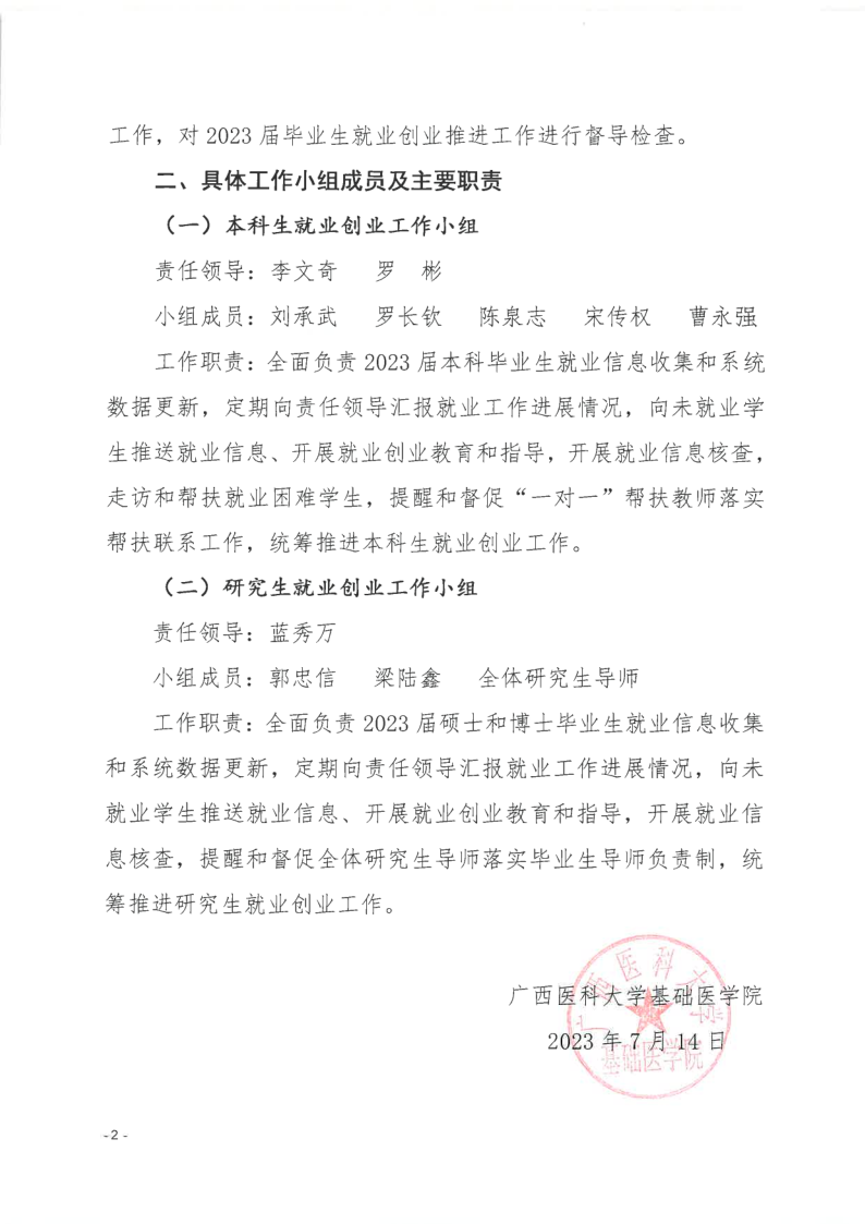 关于成立2023届毕业生就业创业推进工作专班的通知