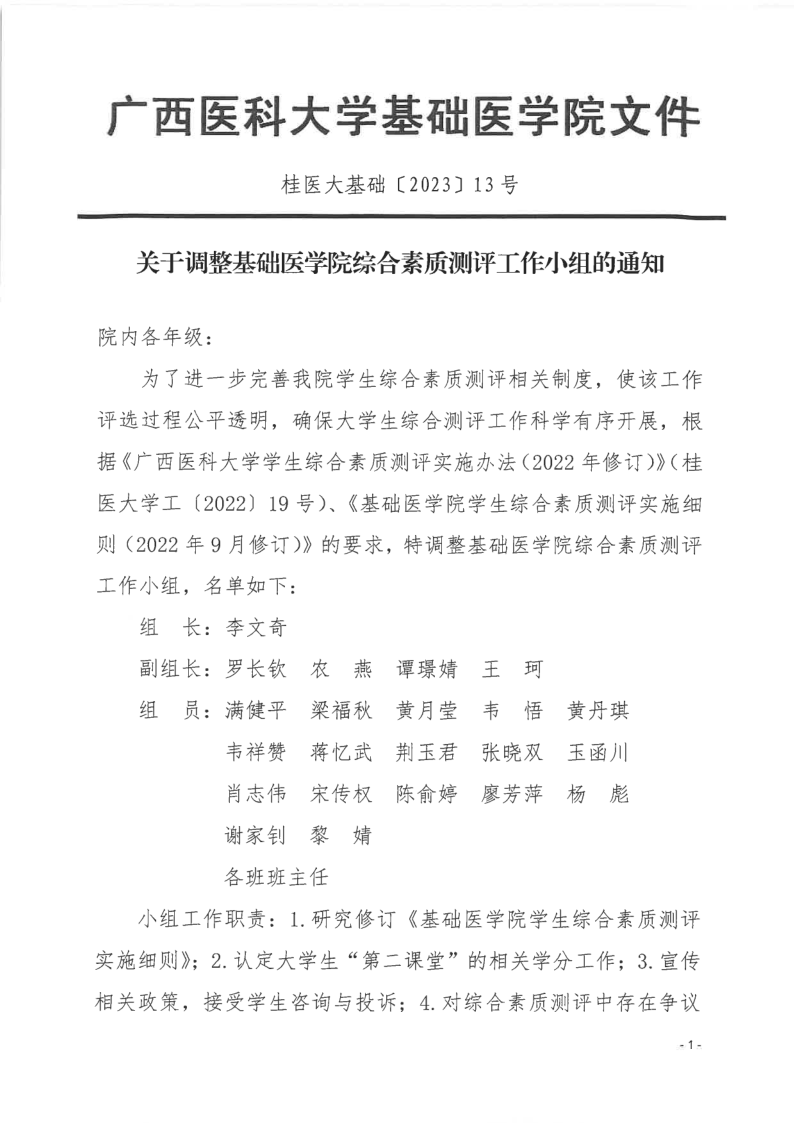关于调整太阳成集团tyc151cc综合素质测评工作小组的通知
