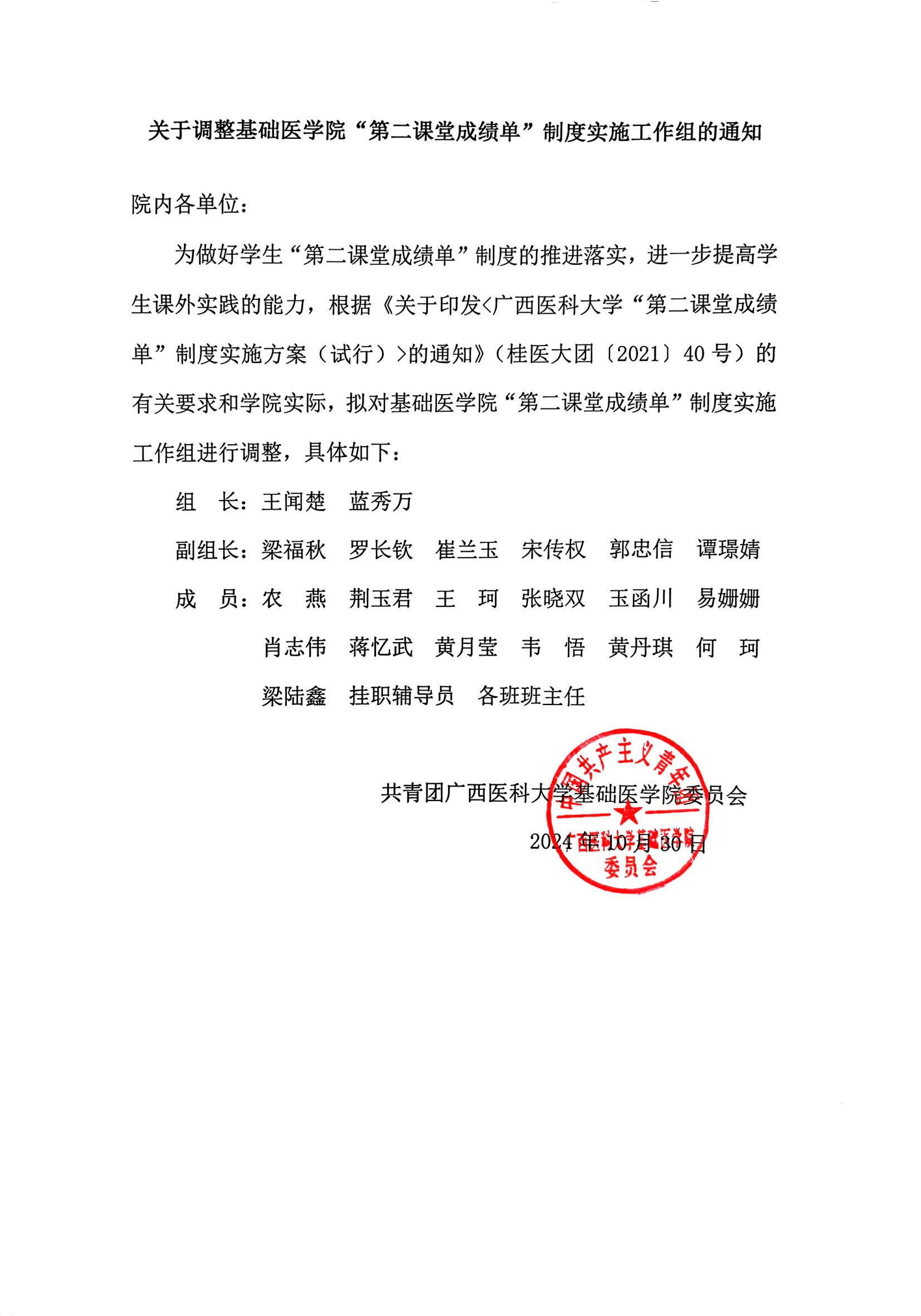 关于调整太阳成集团tyc151cc“第二课堂成绩单”制度实施工作组的通知
