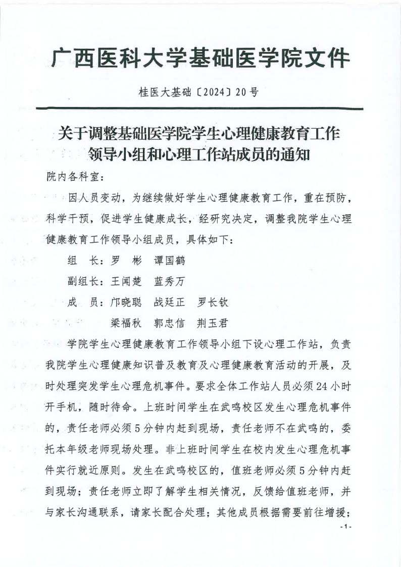 关于调整太阳成集团tyc151cc员工心理健康教育工作领导小组和心理工作站成员的通知