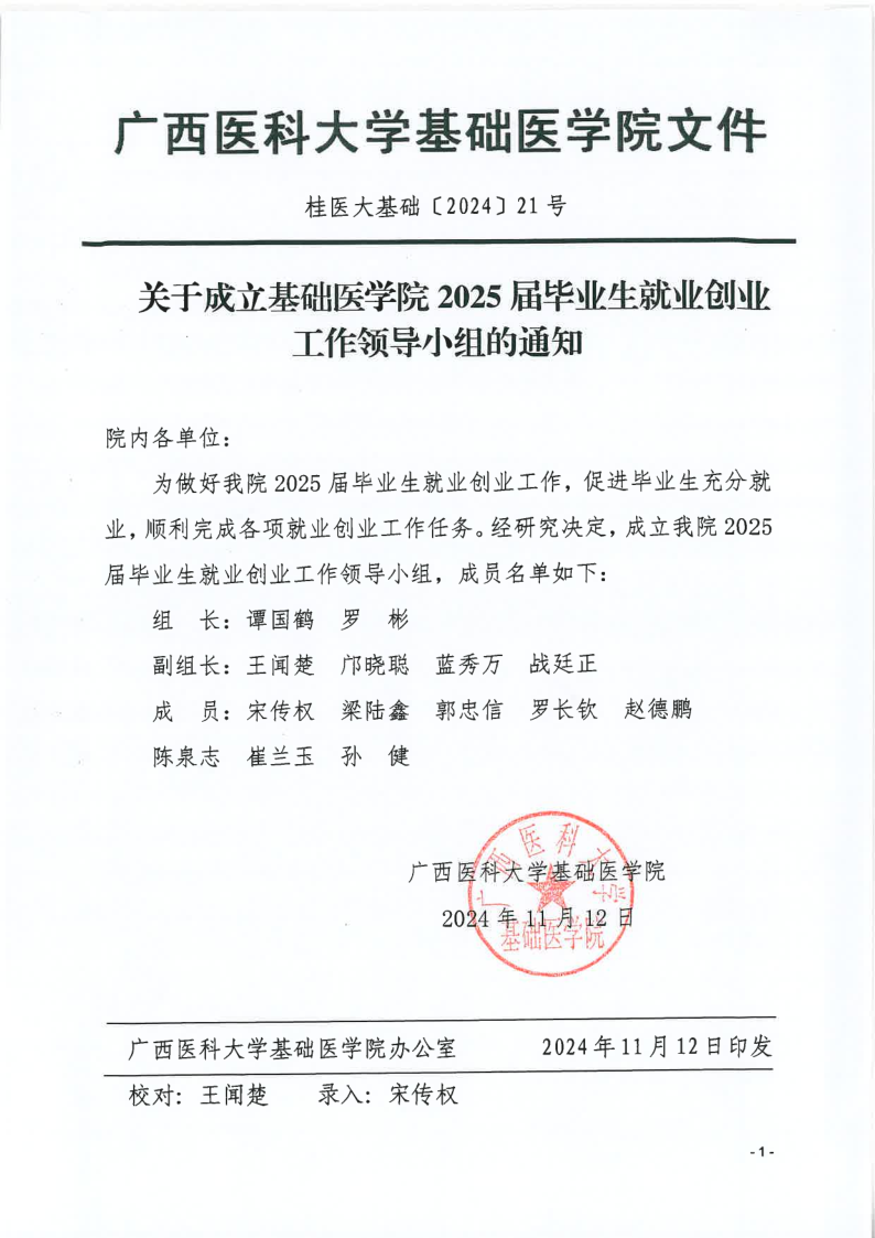 关于成立2025届毕业生就业创业工作领导小组的通知