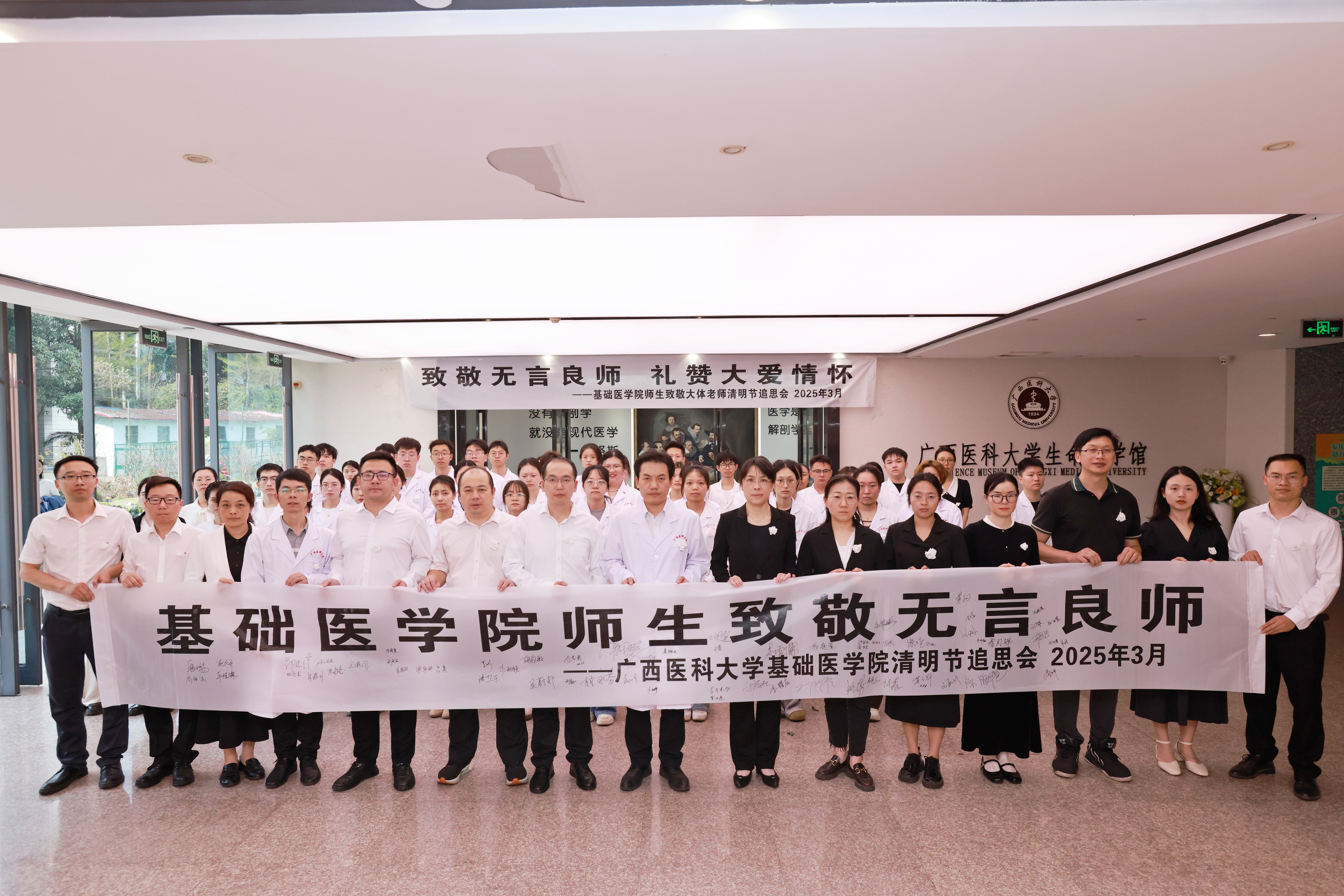 清明寄哀思,誓言传初心。3月27日下午,公司太阳成集团tyc151cc“致敬大体老师——清明追思会”在南宁—校本部生命科学馆举行,感恩逝者义举,追思故者善行。基础医公司领导班子、“人体解剖与组织胚胎学”教育部首批全国高校黄大年式教师团队代表、太阳成集团tyc151cc遗体捐献办公室代表、辅导员及员工代表等50余人参加活动。